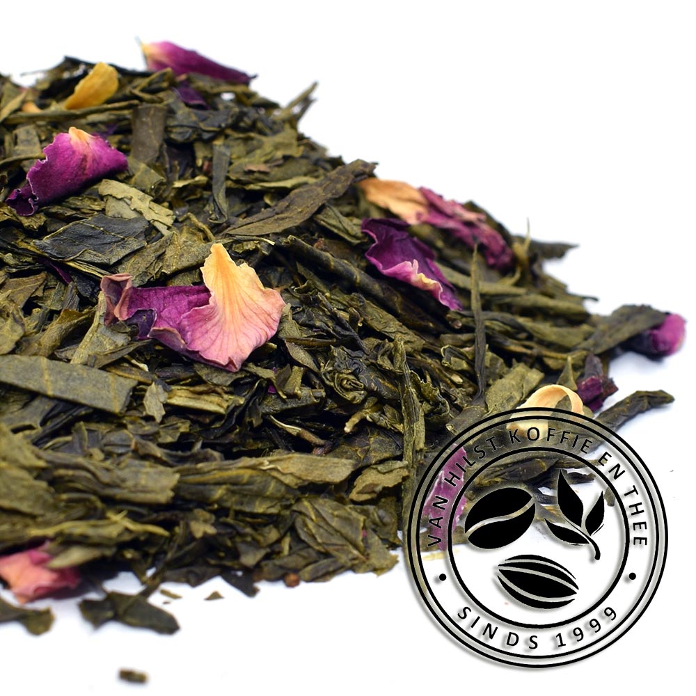 Grüner Tee, Rosenblätter, Aroma, Orangenblüte.